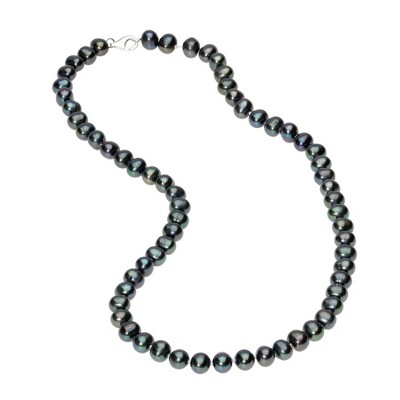 Lavari Jewelers Women's Sterling Silver 6-7MM Freshwater Black Pearl Necklace