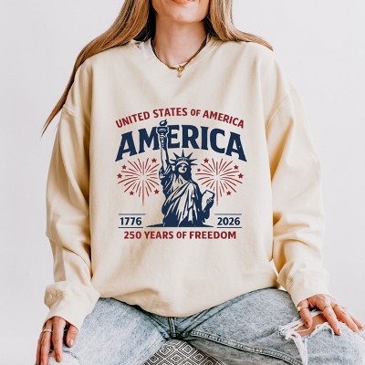America Statue of Liberty 250 Years - Women's Lightweight Garment Dyed Sweatshirt