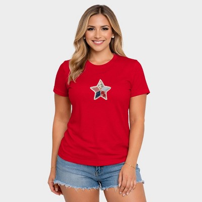 Patriotic Star Faux Patchwork - Women's Short Sleeve Graphic T-Shirt