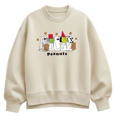 Women's - Peanuts - Halloween Costumes Oversized Fleece Crew Sweatshirt