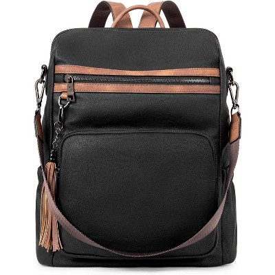 SEVOBAL Backpacks Small Vegan Leather Hobo Handbag Shoulder Purse with Zipper for Daily Use, Black, 9.45"*7.48"*2.36"