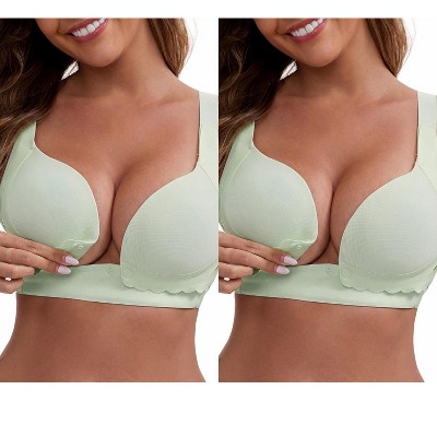 INSPIRE CHIC Women's Front Close Wireless Push Up Adjustable Spaghetti Straps Back Hooks Nursing Maternity Bras 2 Packs