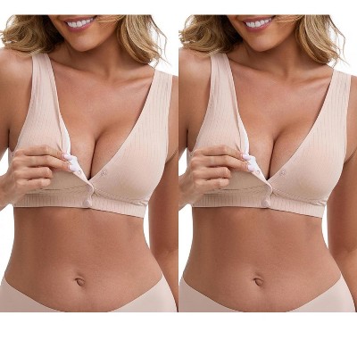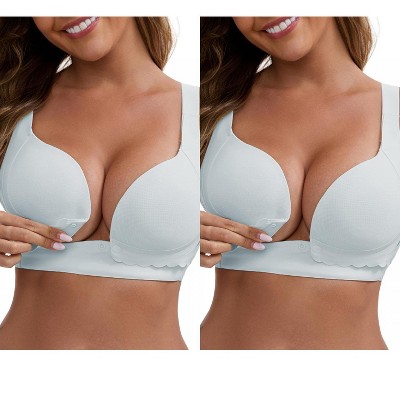 INSPIRE CHIC Women's Front Close Wirefree Padded Cross V-Neck Lift Up Soft Breastfeeding Maternity Nursing Bras 2 Packs