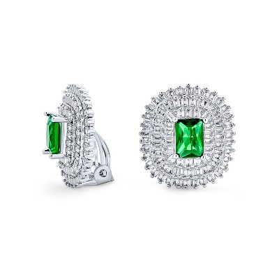 Bling Jewelry Classic Holiday Party Emerald Cut Green Cubic Zirconia Triple Row Baguette Halo CZ Stud Clip On Earrings Non Pierced Ear
