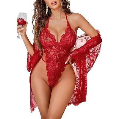 Avidlove Women Lingerie Set 2 Piece Lace Robe with Lace Teddy Lingerie Bodysuit