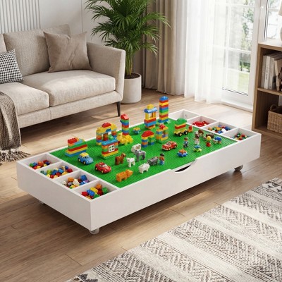 JVNOXK 2 in 1 Rollaway Play Table and Toy Organizer Compatible with Lego Suitable for Storing Under Bed or Sofa-White (38" x 18.7" x 5.9")