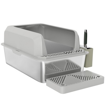 Enclosed Stainless Steel Cat Litter Box W/ Lid, Extra Big Litter Box for Cats, High Sided, Anti-Leakage & Odor Free, Includes Scoop & Litter Mat