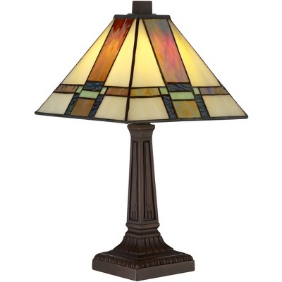 Robert Louis Tiffany Mission Accent Table Lamp 14 1/4" High LED Art Deco Stained Glass Shade for Bedroom Bedside Nightstand Office