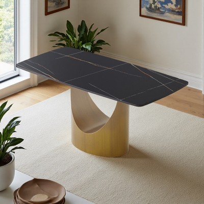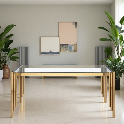65" Rectangular Tempered Glass Dining Table with Polished Legs