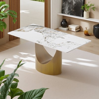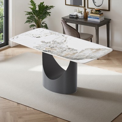 Dovelina Oval Wood Dining Table Kitchen Table with Metal Legs