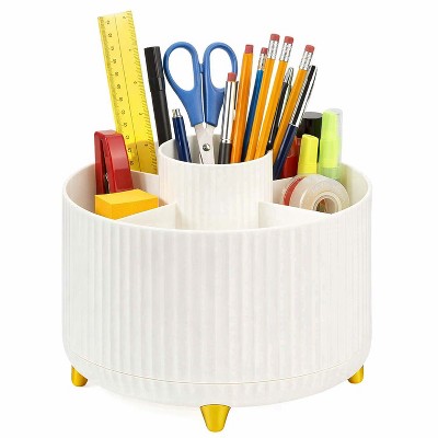 Mber Pen Holder for Desk 360° Rotating Pencil Holder for Desk Pen Organizer, 5 Slots Pencil Cup Holder for School Home Office Desk Organization, White