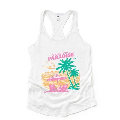 Greetings From Paradise Palm Tree - Women's Graphic Racerback Tank Top