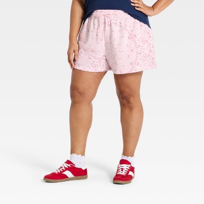 Women's Pink Paisley Graphic Jogger Shorts - Light Pink