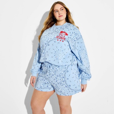Women's Blue Graphic Jogger Shorts - Light Blue Paisley