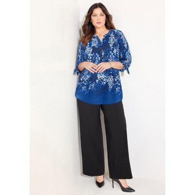 Catherines Georgette Buttonfront Tie Sleeve Cafe Blouse