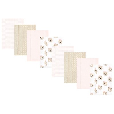 Hudson Baby Infant Girl Flannel Burp Cloth 7pk, Pink Taupe Bear, One Size