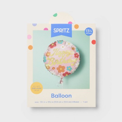 Retro Floral Happy Birthday Round Foil balloon- Spritz™