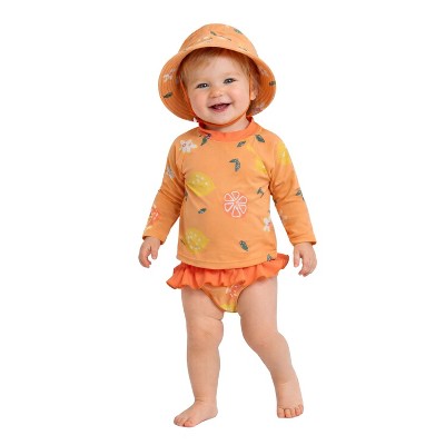 Heat Swimwear Infant Girls Long Sleeve Rashguard Swimsuit set, Lemons