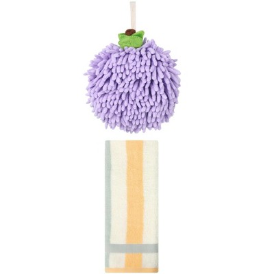 REGALWOVEN Soft Absorbent Cute Fuzzy Hanging Decorative Bathroom Chenille Hand Towel 6" x 15"/7" x 7" 2 Packs