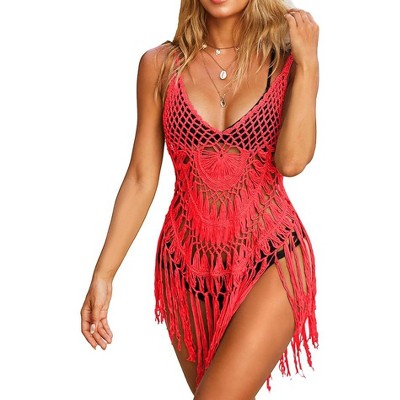 Cupshe Women's Crochet Knit Cutout V-Neck Mini Cover-Up Dress