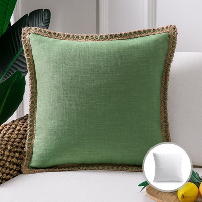 Phantoscope Linen Trimmed Farmhouse Series Decorative Throw Pillow with Insert, 1 Pack