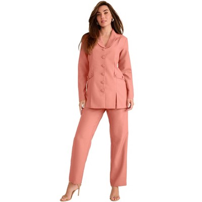 Roaman's Petite Plus Size Long Sleeve Ten-Button Shawl-Collar Pant Suit – 2-Piece Pant Set