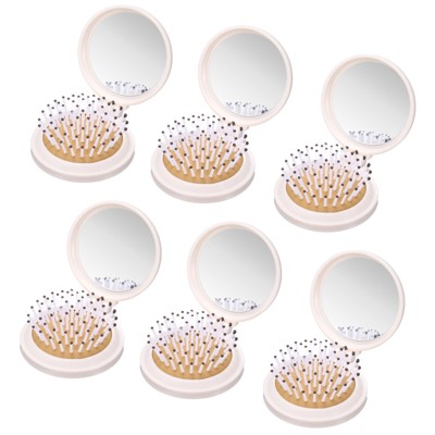 Unique Bargains Round Folding Mini Compact Travel Hair Brush with Mirror 6 Pcs