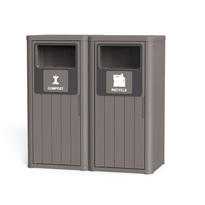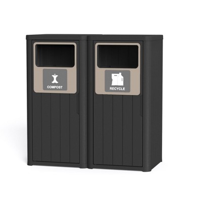 42 Gallon Outdoor Trash Bin, Resin Manual Lift Garbage & Recycling Storage Deck Box with Lid Double-Bucket