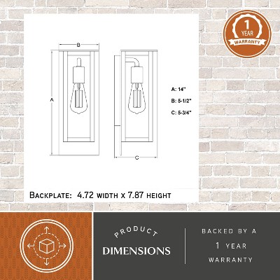 VAXCEL Burr Ridge 14 in. H 1-Light Matte Black Contemporary Outdoor Wall Sconce made of Durable Steel, Clear Glass Shade, LED Compatible