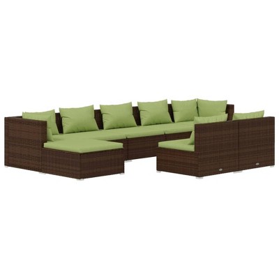 vidaXL Garden Lounge Set Brown with green cushions