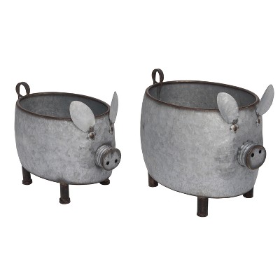 Transpac Metal Country Pig Planters Set of 2 Multicolored Tabletop Decor for Spring Home and Garden Decoration