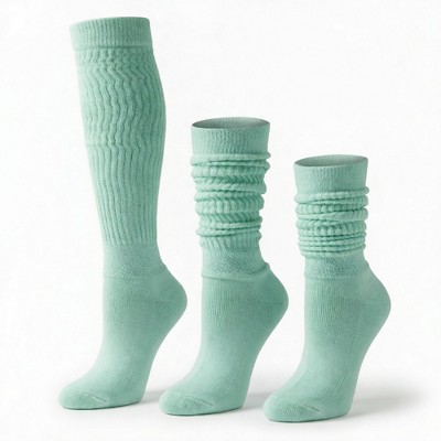 Women’s Cotton Slouch Socks 3 Pairs, Knee High Scrunch Boot Socks, Extra Long All Season Comfort, Made in USA