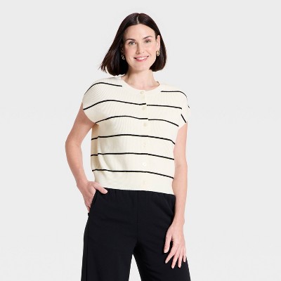 Women's Crewneck Cap Sleeve Button-Front Sweater Vest - A New Day™