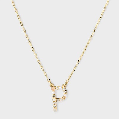14k Gold Dipped Opal Pearl & Cubic Zirconia Letter Initial Necklace - A New Day™ Gold