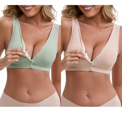 INSPIRE CHIC Women's Front Close Wirefree Padded Cross V-Neck Lift Up Soft Breastfeeding Maternity Nursing Bras 2 Packs