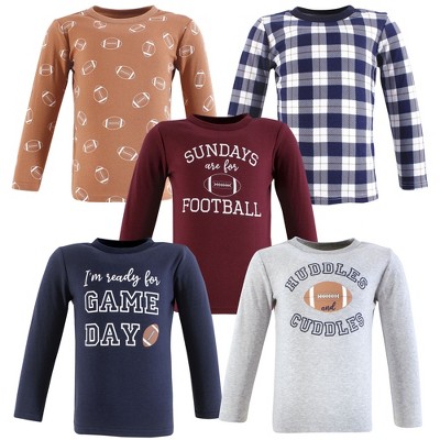 Hudson Baby Infant Boys Cotton Poly Long Sleeve T-shirts 5-Pack, Football Huddles