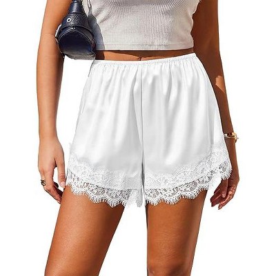 Ekouaer Women's Silk Satin Shorts Lace Trim Micro Mini Satin Shorts Y2K Casual Pajama Short Summer Lounge Shorts