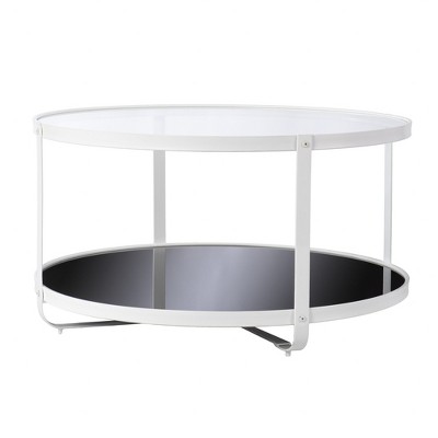 HomeRoots 32" White Glass And Metal Two Tier Round Coffee Table