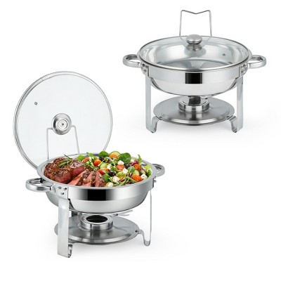 Chafing Dishes 2-Pack, 5 QT Round Buffet Set with Glass Lids for Food Warmers for Catering, Dinner Parties, and Events