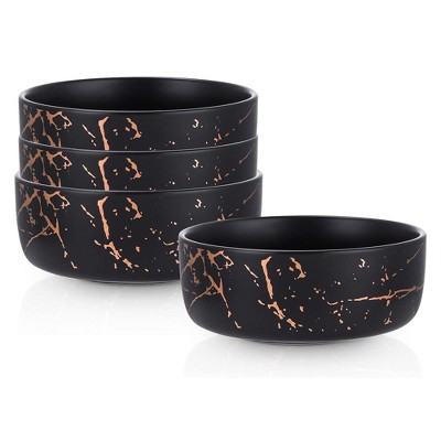 Stone Lain Zora Porcelain 4 Piece Bowl Set, Soup or Salad Serving Dishes, Black