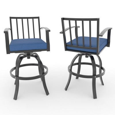 CLIHOME Cast Aluminum Patio Vintage Carved Backrest High Bar Chair with Sofa Cushions(Set of 2)