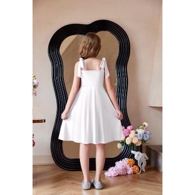 Arshiner Girls Summer Dress Tie Strap Sleeveless Solid Color Square Neck Party Dresses 6-11 Y