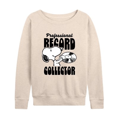 Women's - Peanuts - Record Collector Lightweight French Terry Wide Neck Long Sleeve Graphic Shirt