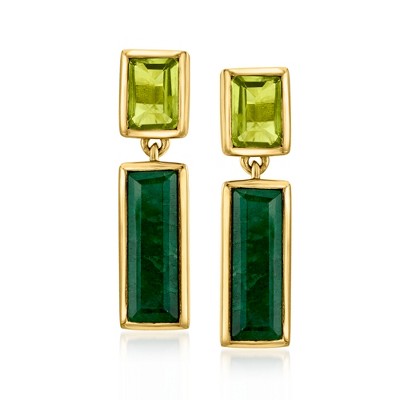 Ross-Simons 5.50 ct. t.w. Emerald and 2.30 ct. t.w. Peridot Drop Earrings in 18kt Gold Over Sterling