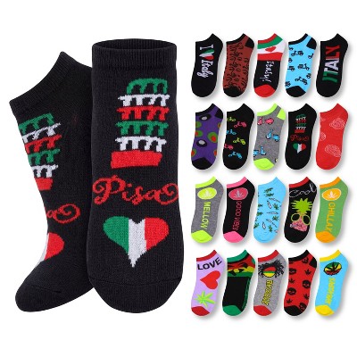 Tipi Toe Women's 20 Pairs Italian Rasta Colorful Patterned Low Cut/No Show Socks