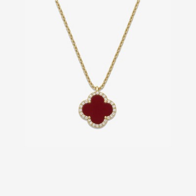 Arden Necklace – Gold Plated with Black, Pearl, and Red Clovers and CZ Accents