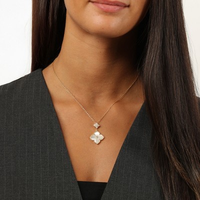 Lavari Jewelers Women's Flora Classic Malachite Yellow Gold Plated Sterling Silver Double Flower Adjustable Pendant Necklace with Cubic Zirconia