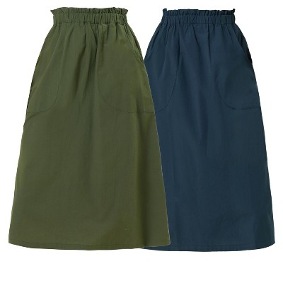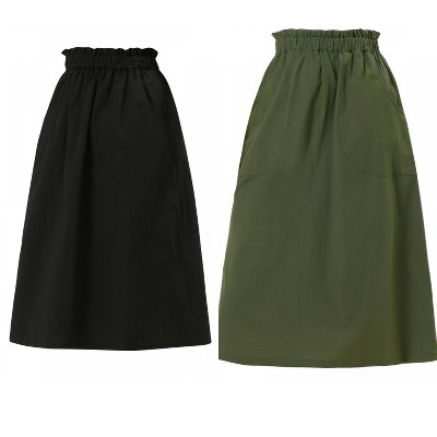 INSPIRE CHIC Women's Stripes Button Front Elastic Back A-Line Midi Skirt