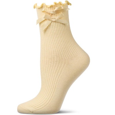 Memoi Women's Chainlink-Knit Cotton-Rich Shortie Sock with Bow Embroidery White 9-11