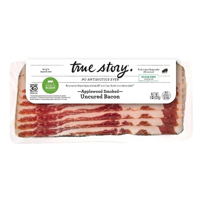 True Story Applewood Smoked Uncured Bacon No Sugar - 8oz